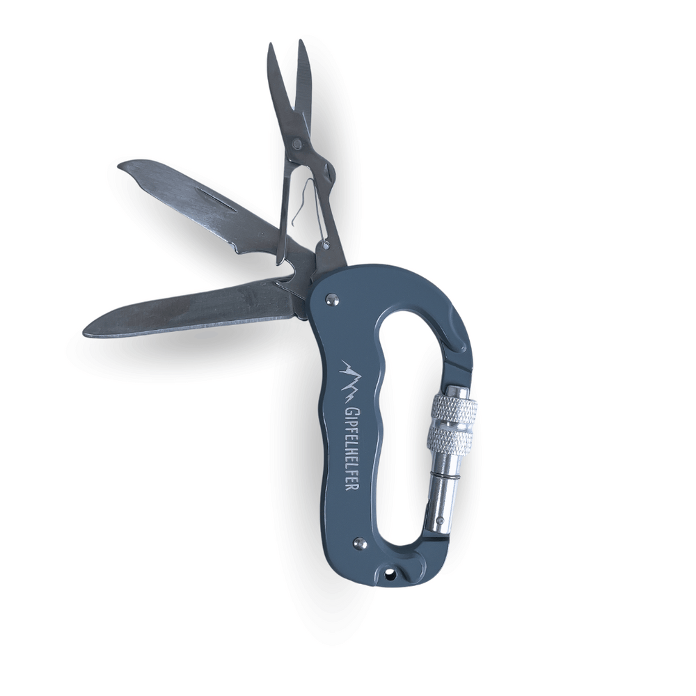 Unser multifunktionaler Karabiner ist dein Helfer für jedes Abenteuer! Der Karabiner ist so praktisch und leicht, dass du ihn überall hinhängen kannst und einfach für jede Aktivität mitnehmen kannst. Der Gipfelhelfer vereint mehrere Funktionen und kann somit als Taschenmesser, Flaschenöffner, Feile und Schere verwendet werden. Egal ob du deine Herausforderung auf dem Gipfel meistern oder einfach im Alltag eine Lösung parat haben möchtest - dieser kleine, handliche und leichte Helfer lässt dich nicht im Stich. Noch dazu ist er durch seine einzigartigen Farben in Pastellgrün, Burgund oder klassischem Schwarz auch noch ein Hingucker und macht deinen Gipfelmoment perfekt.