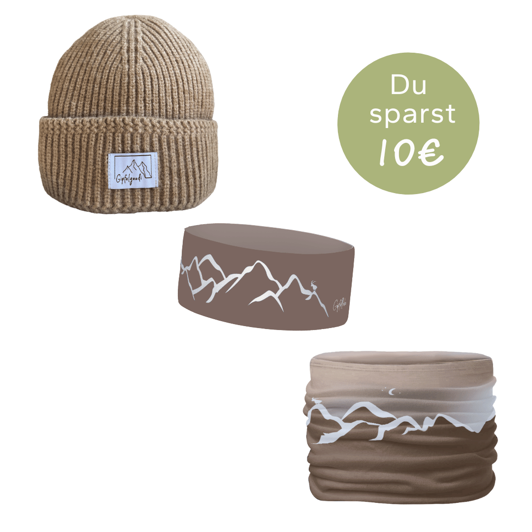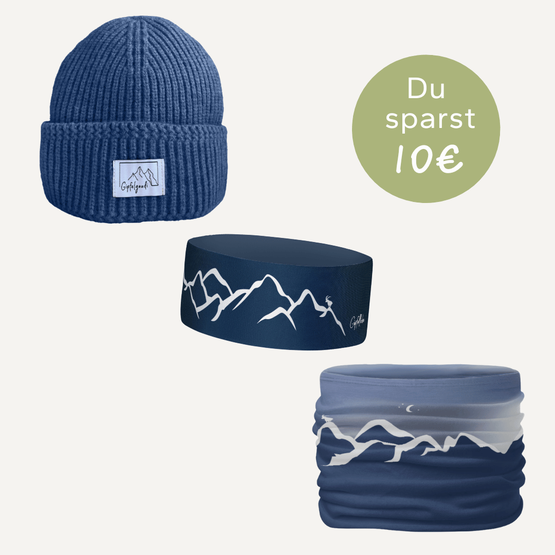 Mit unserem exklusiven Set bestehend aus einem Multifunktionstuch, einem Stirnband und einer Mütze im Bergwelten-Design bist du bestens ausgerüstet – für deine Gipfelmomente, Outdoor-Abenteuer oder sportlichen Aktivitäten. Ob am Berg, beim Laufen oder einfach im Alltag: Dieses Duo begleitet dich stilvoll und funktional.